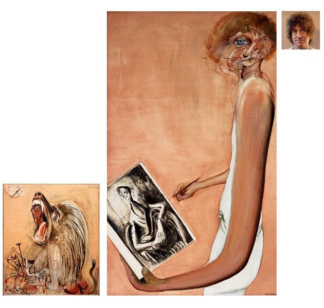 Whiteley's art during his years of addiction offers a window into his psychological struggles. His works from the 1980s, in particular, are marked by a raw, confessional quality, as though Whiteley was using his art to grapple with the demons of addiction. Paintings such as Self-Portrait in the Studio (1976) and Art, Life and the Other Thing (1978) are both intensely personal and self-critical. In these works, Whiteley often depicted himself in fragmented or distorted forms, suggesting a sense of disconnection from his body and his surroundings—a metaphor for the alienation he experienced as a result of his drug use.