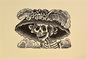 In visual art, the sugar skull has been incorporated into various forms, including painting, sculpture, and tattoo art. Mexican artists such as José Guadalupe Posada played a key role in popularizing the image of the skull in Mexican art. Posada’s famous La Calavera Catrina (The Elegant Skull), an etching of a skeletal woman dressed in European finery, became an iconic image of Mexican folk art and a precursor to the modern sugar skull. Posada’s work, which often satirized Mexican society and its attitudes toward death, highlighted the playful and irreverent nature of the calavera tradition.