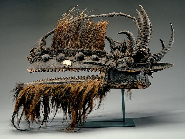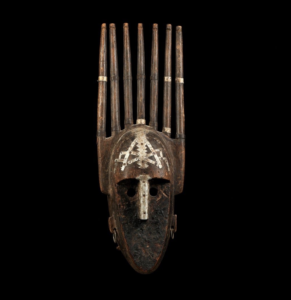These terracottas were more than mere decorations. Many were discovered in burial sites or shrine contexts, suggesting they had spiritual or ceremonial roles. Some figures portray humans with exaggerated features or even disease symptoms (boils, elephantiasis), possibly serving as spirit representations or amulets to ward off illness. Others were interred with the dead, perhaps as guardians or status markers in the afterlife. Alongside terracotta, Malian sculptors also carved wooden figures and masks. Not all regions of Mali converted to Islam in this period. For instance, the Bamana (a Mande people in the Mali heartland) largely retained traditional religion in the 14th century. These communities produced wooden ritual masks, headdresses, and statues used in initiation societies and harvest ceremonies. A notable piece is the Bamana cow mask (Mishi) with metal adornments, used by an agricultural society to invoke supernatural favor. Wooden sculptures often depicted ancestral or totemic figures and were kept in families or sanctuaries. They could be adorned with patina from offerings, indicating their ritual use. Across both terracotta and wood mediums, Mali’s sculptors showed a flair for dynamic form and surface detail. Incised lines, painted sections, and applied clay coils were used to create garments, jewelry, and facial features on figures. The artistry was such that even everyday objects had sculptural elements. For example, Mali’s iron staffs and weapons were sometimes forged with figurative finials by the blacksmith caste, who held quasi-sacral status as artisans of transformation. In Mali’s 14th-century society, therefore, sculpture served both sacred and secular functions. It bridged the old and new: clay horsemen and ancestral figures continued longstanding beliefs, while subtly, some sculpture also began reflecting Islamic influence (e.g. no overt idolatry, more abstract forms for Islamic contexts). The survival of numerous Mali-era terracottas in the archaeological record underscores their importance. These artworks encapsulate the creativity and spiritual life of the Mali Empire, standing as tangible embodiments of stories, status, and spirituality passed down by the griots and priests.