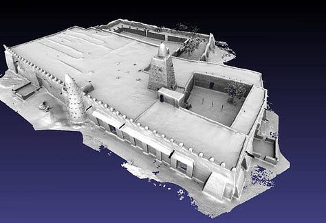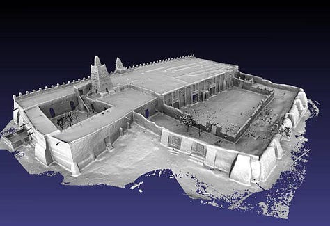 The mosque’s construction showcases ingenious mud-brick techniques. It is built with sun-baked bricks (ferey) joined with mud mortar and plastered over with a smooth mud coat. In building such a massive structure from earth, Djenné’s masons employed timber scaffolding permanently embedded in the walls. Dozens of rodier palm stakes (toron) protrude about 60 cm from the façades. These toron beams give the mosque its porcupine-like appearance and serve a critical function; each year the community climbs them to replaster the mosque, repairing damage from the rains. Architecturally, the Great Mosque is an imposing rectilinear mass with monumental buttresses. Its eastern facade (facing the city’s central market square) is dominated by three tall minaret towers buttressed by eighteen engaged pilasters. Atop each minaret is a cone-shaped pinnacle capped by an ostrich egg, a traditional symbol in Mali denoting purity and prosperity. The mosque’s wooden doors are massive and traditionally hand-carved, and small triangular vents in the upper walls, covered with terra-cotta lids, allow hot air to escape; a clever ventilation system in this adobe giant. Djenné’s masons also inserted ceramic half-pipes at the roofline to channel rainwater off the structure, preventing erosion of the walls. Culturally, the Great Mosque has immense significance. It is the physical and spiritual heart of Djenné. Its prominent silhouette of crenellated mud towers has become an icon of Malian and African architecture. The building of the original mosque in the Mali Empire era signaled Djenné’s importance as a center of Islam and trade, and over centuries, local people maintained it as a matter of pride. To this day, the annual crepissage (replastering festival) at the mosque is a major community event that brings residents together in the very practice that has preserved this architectural heritage. Technically innovative yet deeply traditional, the Great Mosque of Djenné highlights how Mali’s architects achieved monumental scale and durability in mud. Its use of timber reinforcement and community upkeep represent a brilliant response to environment and social organization. Moreover, the mosque’s aesthetic, a forest of soaring earthen pillars and organic forms, is a testament to the Mali Empire’s enduring vision of sacred architecture, one that blends practicality, spirituality, and artistic beauty.