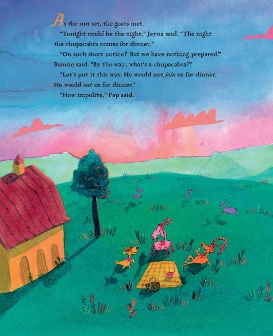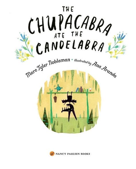 Nobleman, Marc Tyler. The Chupacabra Ate the Candelabra. Illustrated by Ana Aranda, Nancy Paulsen Books, 2017. Penguin Random House, www.penguinrandomhouse.com/books/318055/the-chupacabra-ate-the-candelabra. Accessed 15 May 2025.