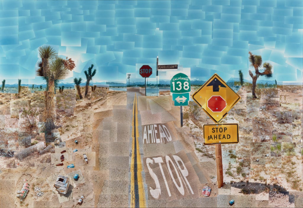 However, while marijuana may have contributed to Hockney's experimentation with new visual styles and techniques, it also had a more ambivalent impact. Prolonged use of marijuana can result in cognitive impairment, impacting memory and executive function. Hockney's own reflections on his drug use indicate that while marijuana may have helped him tap into more surreal or experimental modes of thinking, it also contributed to periods of inertia and a tendency to procrastinate on projects. Some of his more fragmented works from the 1970s and 1980s, including his photomontages such as Pearblossom Highway (1986), reflect this interplay between heightened creativity and the dissociative effects of marijuana use.