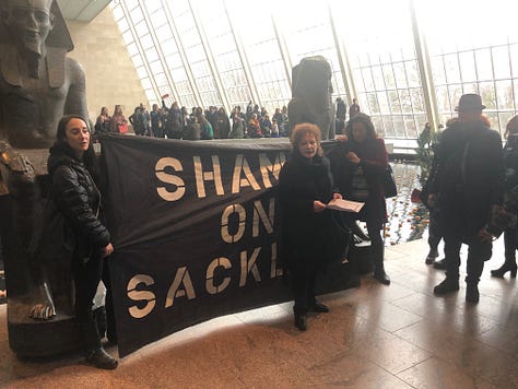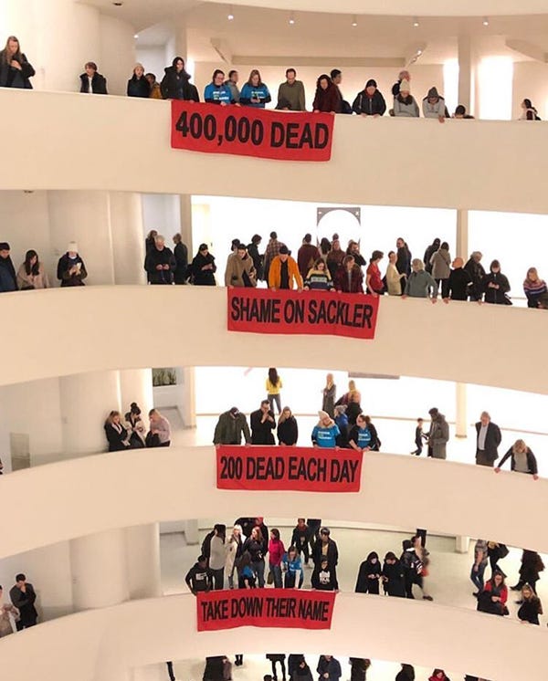 P.A.I.N.'s primary objective has been to pressure museums to sever financial ties with the Sacklers, who for decades donated heavily to cultural institutions to launder their reputations. The group staged dramatic interventions in spaces such as the Metropolitan Museum of Art, the Guggenheim, and the Louvre, performing “die-ins,” scattering empty prescription bottles, and chanting slogans like “Shame on Sackler” and “Crisis is Culture” (Time; Hyperallergic).