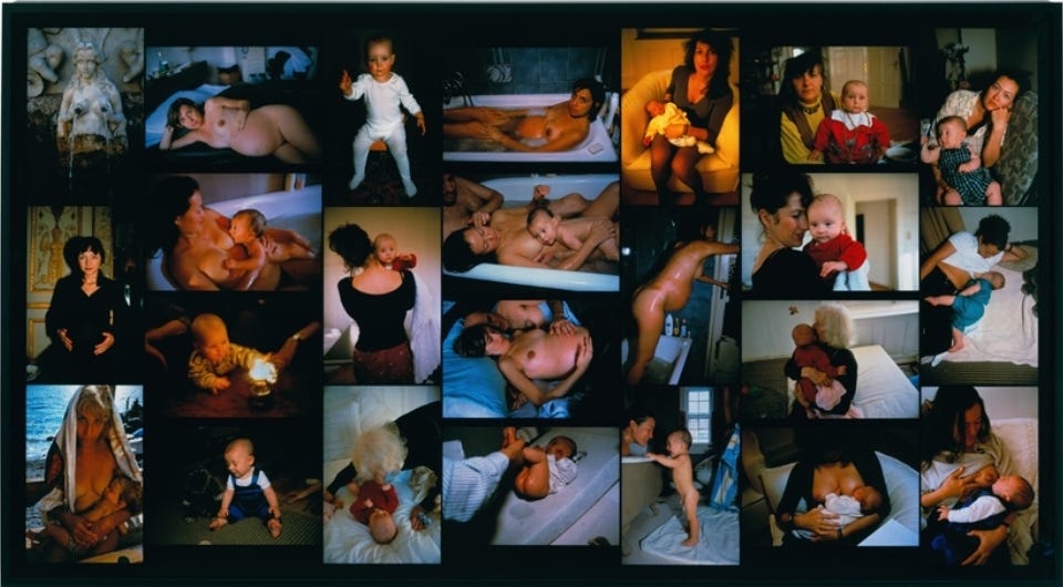 This long-term project showcases women in various stages of pregnancy and motherhood, many of them queer. Sharon Harper writes that Goldin “repositions maternity within feminist art history,” insisting that caregiving and the domestic sphere are worthy of artistic attention (56). These images expand Goldin’s practice beyond nightlife into radical acts of maternal representation (ICA Boston).