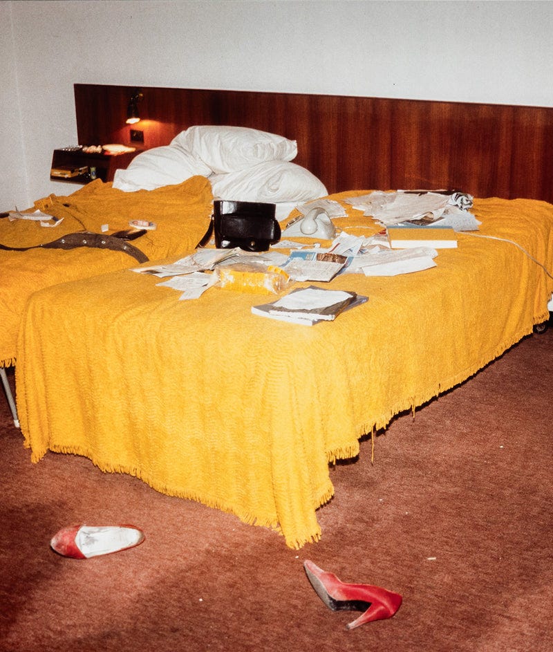 While traveling through Europe, Goldin took this solitary, introspective photograph of a nearly empty hotel room. The dim lighting and vacant bed emphasize dislocation and fatigue. Vince Aletti notes that it “foregrounds the artist’s own displacement,” reinforcing her status as both participant and observer in the lives she photographs (112).