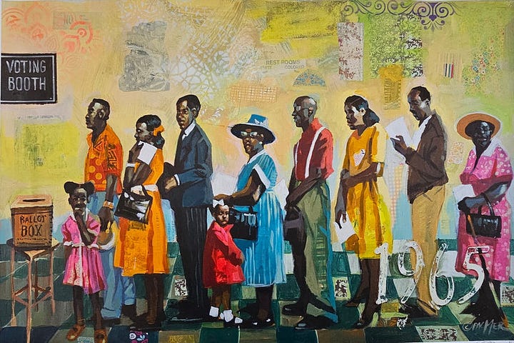 Charly Palmer’s art functions as a form of historical testimony. By capturing pivotal moments and figures of African American history through his distinctive visual language, Palmer contributes to a broader cultural dialogue that seeks to reclaim and reinterpret the Black experience. His “Civil Rights” series, in particular, stands as a visual archive of resistance and resilience, prompting viewers to engage with historical injustices and the ongoing struggle for equity. Beyond the canvas, Palmer’s role as an educator at Spelman College amplifies his influence. His lectures and workshops encourage emerging artists to explore the intersections of art, history, and activism. As noted in several interviews and exhibition reviews, Palmer’s work not only commemorates historical milestones but also inspires contemporary audiences to consider how art can drive social change (McAllister, “Art that captures the spirit”).