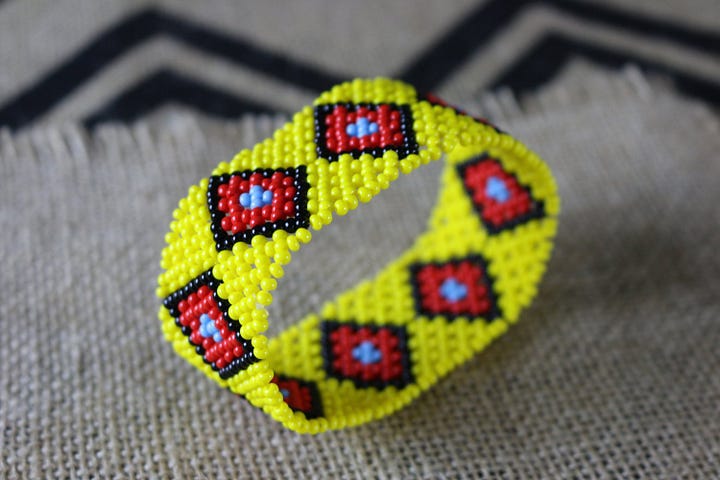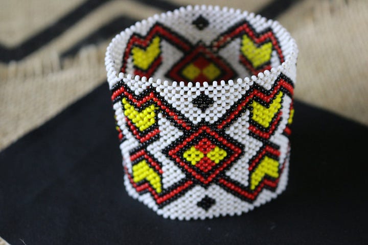 The vibrant colors and symmetrical designs of peyote-inspired beadwork reflect visions and spiritual symbolism specific to tribal beliefs.