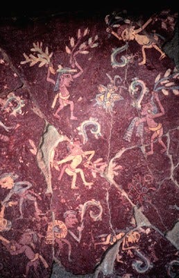 The psychoactive properties of morning glory seeds (Ipomoea tricolor) were utilized in Aztec and Maya spiritual ceremonies. Cave paintings, such as those in Teotihuacán and other Mesoamerican sites, illustrate hallucinogen-inspired visions. These artworks often depict shamans, gods, and animals, reflecting the cosmological beliefs associated with altered states.