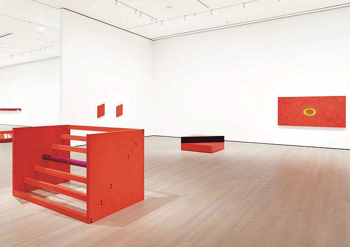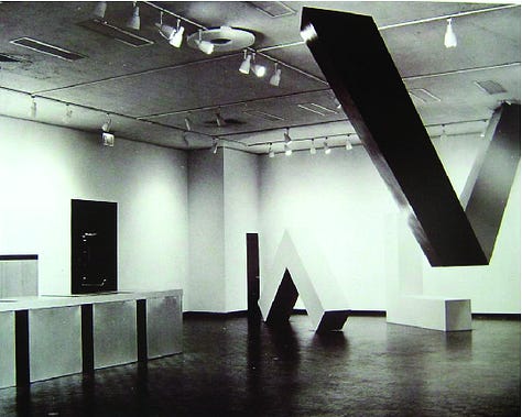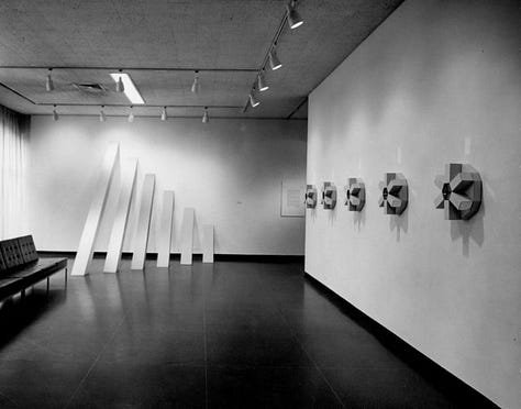 I never met a right angle I didn't like. (Or substitute 'square' for 'right angle'). Looking at the early minimalists beautifully selected for this post, it's clear that angles of all kinds dominate the works. There's irony here: The square is man-made, but the right angle was established by nature when a tree grew straight up, or when rain hit the ground. As I see it, minimalism subtly celebrated man's unique contribution to shapes, deliberately eschewing nature's random amorphous achievements.