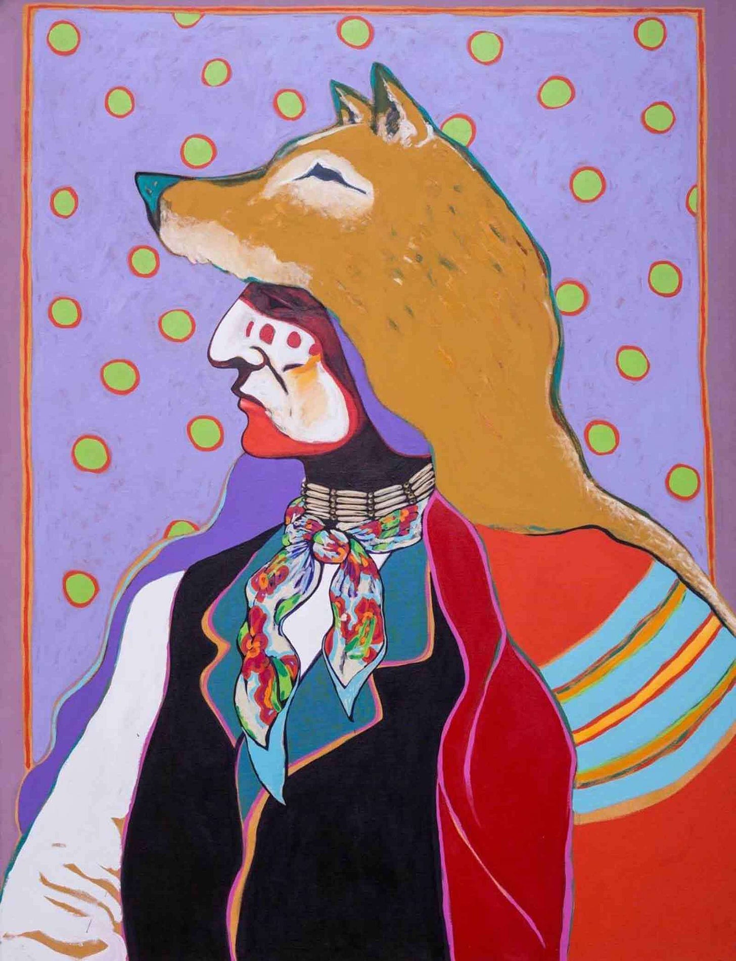 Cannon’s work is marked by its vibrant colors, expressionist forms, and complex engagement with historical and contemporary narratives. Unlike many of his contemporaries, Cannon consciously avoided romanticized or stereotypical depictions of Native life. Instead, his paintings offered critiques of assimilation, colonization, and the commodification of Indigenous culture. For example, his iconic work Two Guns Arikara (1974–77) portrays a Native man in ceremonial regalia seated on a modern chair against a minimal background, merging traditional identity with contemporary realities (Smithsonian National Museum of the American Indian).
