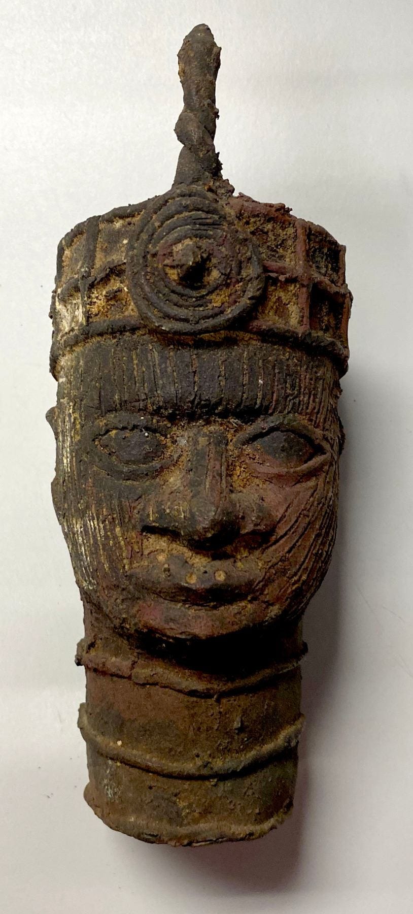 There’s also the ethical conservation aspect. Many Benin pieces still carry residues of their traditional use. For instance, sacrificial materials. The red patina in the recesses, now understood to be remnants of the clay from casting, might have once been intermingled with oils or sacrificial blood rubbed on during rituals. These traces are part of the story. In the past, museum conservators often cleaned objects to look “pristine”; now there is a tendency to preserve such residues if they are stable, as they may hold information. With modern scientific tools like SEM analysis and spectroscopy, conservators can analyze composition without destroying samples. Such studies have solved mysteries (like confirming the “red dirt of Benin” was actually casting clay baked on, not random soil).