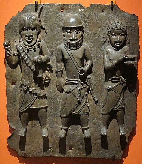 Gunsch, Kathryn W. The Imagery of Power on Benin Bronze Plaques. Smarthistory, 28 Jan. 2020.