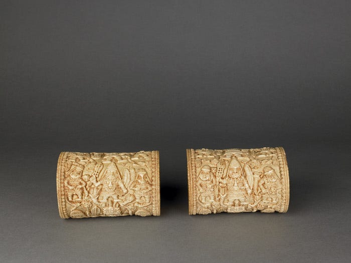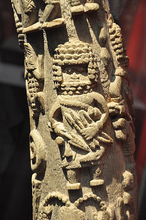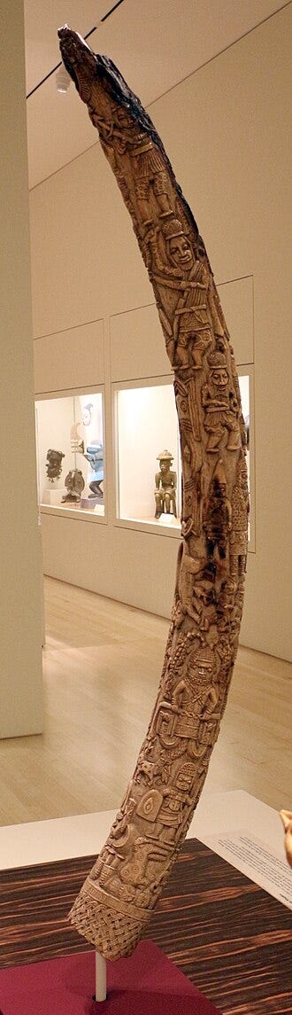 Some historical events known from oral tradition or written records have visual counterparts. The Idah War of the 16th century, for instance, a conflict between Benin and the Igala people, might be echoed in certain war-related plaques or in carved ivory tusks that show battles. The carved altar tusks often were explicitly historical. Artists would carve scenes in registers winding around the tusk, showing the main exploits of the oba being commemorated. For example, a tusk commissioned by Oba Osemwede in the early 19th century (now in a museum) includes carvings of the oba in battle and in state ritual, effectively serving as a timeline of his reign. These tusks, read from bottom to top, were like a spiral narrative to be “read” by those familiar with court history.