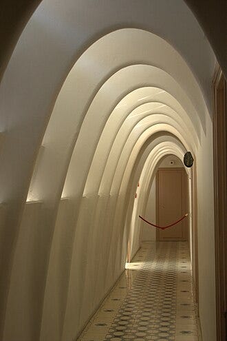 Hyperbolic and parabolic geometries further expanded Gaudí’s repertoire. Surfaces such as hyperboloids and helicoids allowed for natural light penetration, improved acoustics, and structural stability. In Casa Milà (La Pedrera) (1906–1912), Gaudí employed parabolic arches in the attic to create lightweight, efficient spaces reminiscent of rib cages. These vaults not only reduced the need for internal load-bearing walls but also revealed his fascination with the skeletal structures of living organisms.