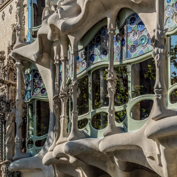 I am totally out of my depth commenting on art history, but I love Gaudí's work. I'm not religious and rarely want to be in a church, and yet I still found the Sagrada Familia awe-inspiring. Casa Batlló, however, is one of my favorite places I've ever been in my life. The lack of religious iconography and seeming oneness with nature spoke far more to me. I have a picture I took of it on my wall, and I think about it often, more than a decade after I visited.