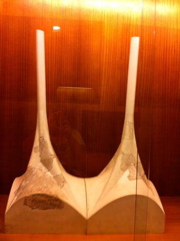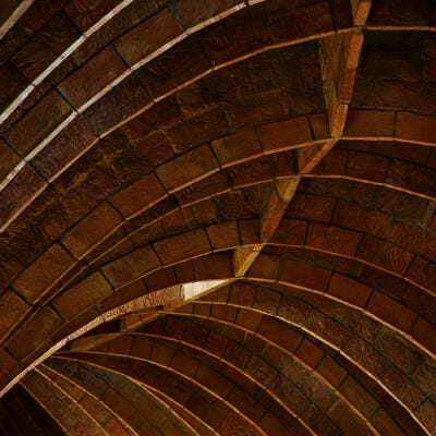 Structurally, the crypt demonstrates Gaudí’s pioneering use of catenary arches, inclined columns, and hyperbolic paraboloids, which together created a self-supporting equilibrium system. To develop these solutions, Gaudí constructed elaborate hanging chain models weighted with small bags of birdshot, which when inverted revealed ideal forms of load distribution. This method allowed him to experiment with complex geometries that eliminated the need for buttresses and flying arches, replacing them with naturally balanced, organic forms. The inclined brick columns in the crypt, some slanting inward, others outward, anticipate the tree-like supports of the Sagrada Família, making the crypt a direct structural precursor.