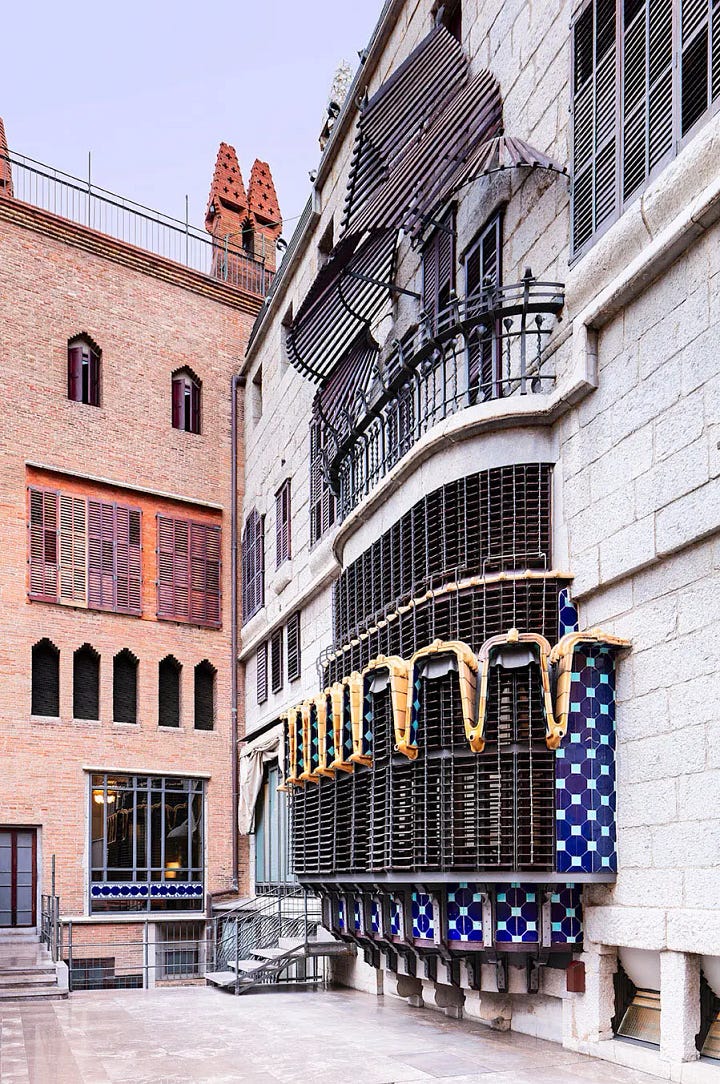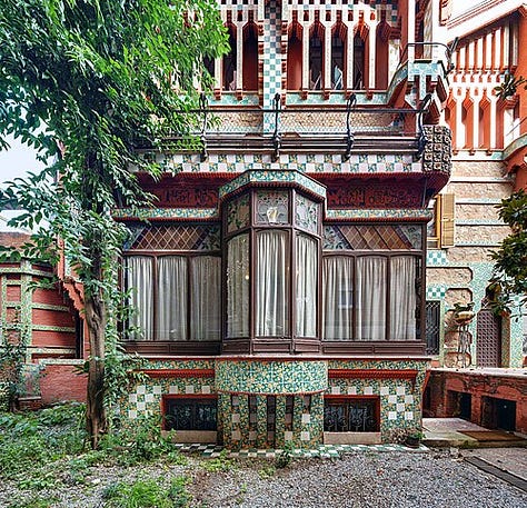 Gaudí’s stylistic departure began with Casa Vicens (1883–1888), where Moorish and oriental motifs combined with polychrome ceramic tiling signaled his willingness to break from strict historicism. The eclecticism here was still tethered to traditional styles but hinted at a desire to create a new architectural language that could absorb diverse influences.