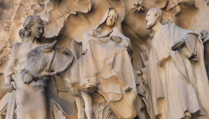 The most prominent feminine presence in Gaudí’s work is the Virgin Mary, a central figure in Catholic theology and in Gaudí’s personal spirituality. The Sagrada Família dedicates one of its tallest towers to Mary, symbolizing her role as intercessor between humanity and Christ. Marian imagery also permeates the Nativity Façade, where Mary appears as the nurturing mother of Christ surrounded by flora and fauna, reinforcing themes of fertility, abundance, and divine femininity. In Gaudí’s symbolic hierarchy, Mary represents both purity and cosmic order, anchoring the feminine within a sacred framework.