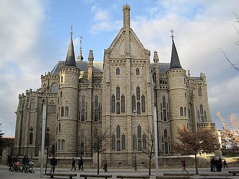 Antoni Gaudí’s architectural trajectory reflects a dynamic evolution from early neo-Gothic influences to the development of a highly personal idiom aligned with, yet distinct from, Art Nouveau. His early works, such as the Colegi de les Teresianes (1888–1890) and the Episcopal Palace of Astorga (1887–1893), reveal a reliance on medieval Gothic forms, characterized by pointed arches, ribbed vaults, and fortress-like massing. These projects, though innovative in detail, remain rooted in revivalist traditions that dominated late nineteenth-century Europe.