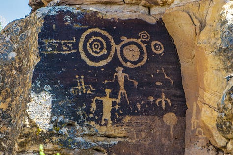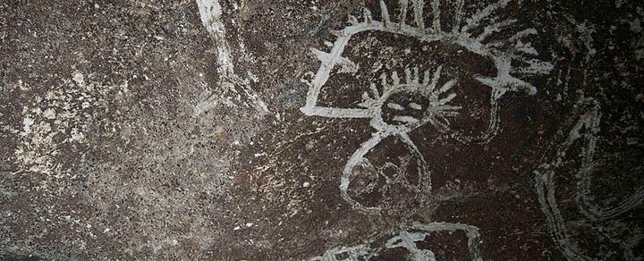 When Europeans arrived in the Americas, they encountered landscapes already marked by thousands of years of Indigenous expression in the form of rock art, petroglyphs, pictographs, and geoglyphs. These carvings and paintings were often tied to ritual practice, cosmology, and territorial identity. For instance, the Taino people of the Caribbean left petroglyphs in caves and riverside boulders, depicting deities, ancestral figures, and animals (Wilson 67–70). In North America, ancestral Puebloans and other groups carved spirals, animals, and clan symbols into canyon walls, many of which still hold ceremonial significance (Schaafsma 88–92).