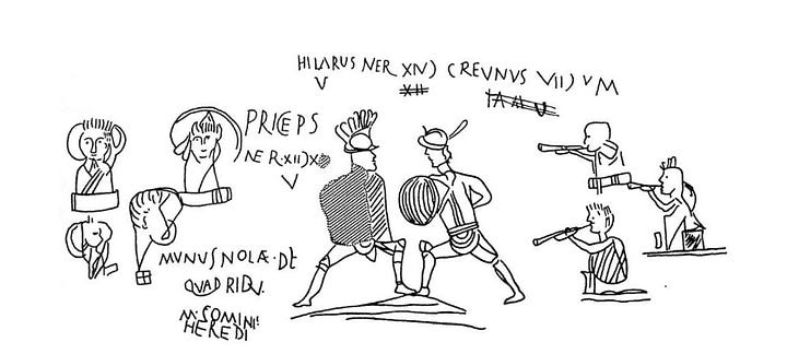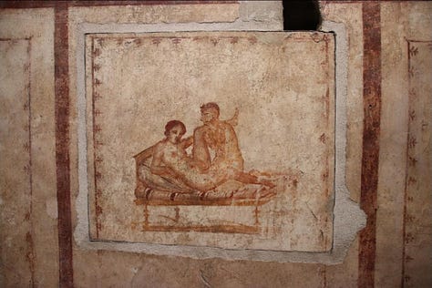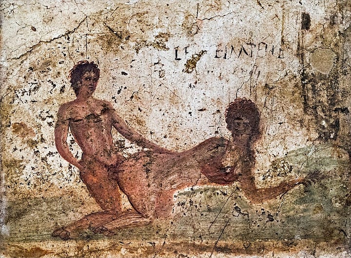 Beyond politics, Pompeii’s graffiti captures intimate glimpses of daily life. One wall in a tavern reads, “I was here with my girlfriend” (CIL IV 2175), while another boasts, “Secundus defecated here” (CIL IV 5243). Erotic graffiti, invectives, and poetic verses abound, blurring the line between art, humor, and obscenity (Milnor 83–85). Others advertised gladiatorial games or declared allegiances to factions.