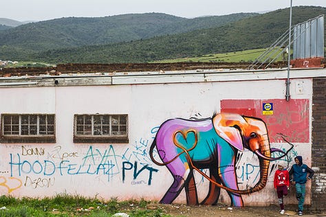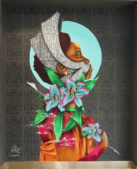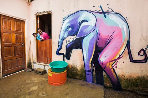 In Africa, graffiti often intersects with political activism and postcolonial identity. South African artist Falko One helped transform Cape Town’s townships with brightly colored murals, part of his “Once Upon a Town” project, which reimagines walls in under-resourced neighborhoods as canvases of pride and possibility (Nuttall 215–16). In Kenya, artist Wisetwo blends New York–style lettering with African masks and hieroglyphs, emphasizing the need to be “true to [his] roots” while participating in a global graffiti dialogue (The World, PRI 2016).