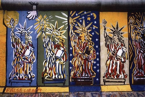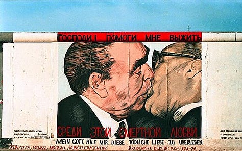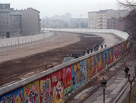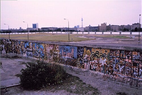 Few places demonstrate graffiti’s political power more vividly than Berlin during the Cold War. After 1961, the Berlin Wall became both a physical and symbolic barrier, dividing East and West. Its western face, exposed to democratic West Berlin, evolved into a sprawling canvas for graffiti, murals, and political slogans, while its eastern face remained stark and bare, heavily patrolled by East German authorities (Hain 45–47).