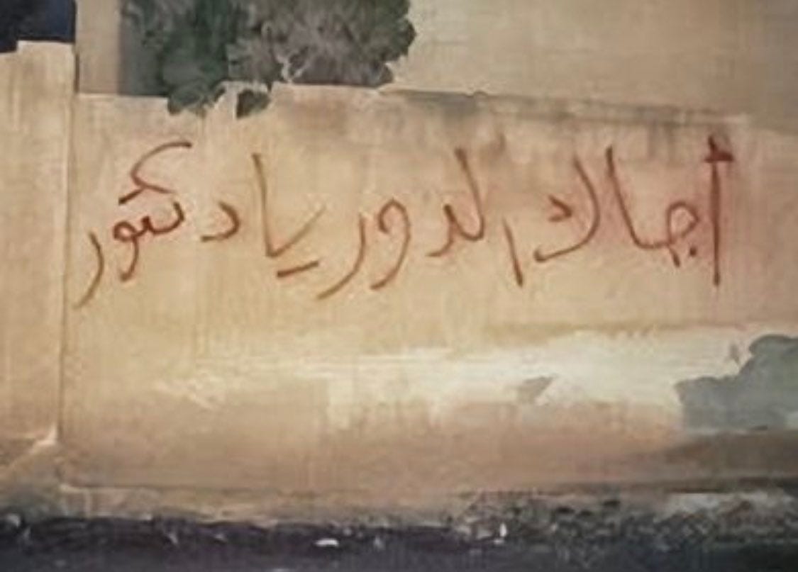 Even in contexts of extreme repression, graffiti appeared. In Syria, clandestine wall-writing by students in Daraa, “It’s your turn, Doctor [Assad]”, sparked some of the earliest protests, underlining how dangerous and impactful graffiti could be (Lesch 89–91).