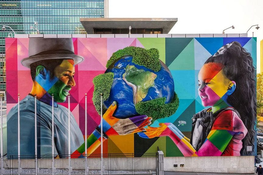 Large-scale eco-murals have appeared worldwide, often created collaboratively between artists and communities. In São Paulo, Eduardo Kobra’s monumental murals depict melting ice caps and endangered animals, reminding city dwellers of the global reach of climate change (Lydon 118). In Berlin and London, artists have painted murals of bees, whales, and forests threatened by human activity, often paired with slogans advocating for sustainability. These works use striking imagery to “compel viewers to confront the consequences of climate change” in their everyday environments (Beauregard 2019).