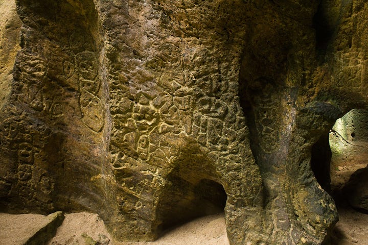 The colonial encounter layered a new kind of graffiti onto these sacred surfaces. Spanish and Portuguese explorers frequently left their names, dates, and Christian symbols carved or painted alongside Indigenous imagery. A striking example comes from Mona Island, Puerto Rico, where archaeologists discovered 16th-century Spanish inscriptions, including prayers and invocations of Christ, scratched into caves that already bore Taino petroglyphs (Samson et al. 2016, 90–94). These acts symbolically overwrote Indigenous cosmologies with European Christian dominance.