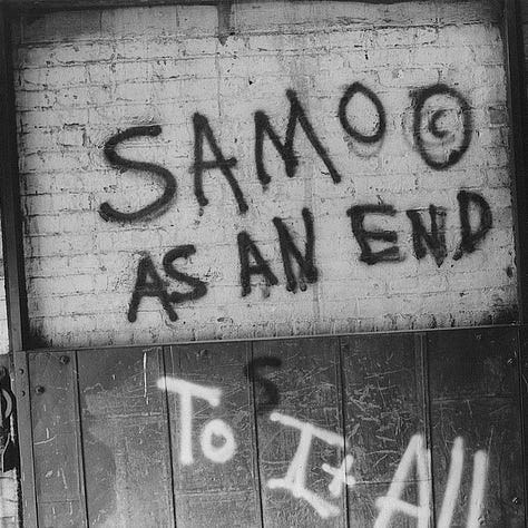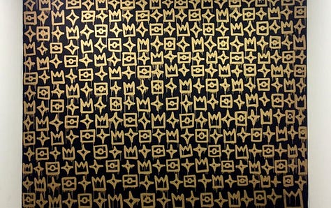 Jean-Michel Basquiat began under the pseudonym SAMO (“Same Old Shit”), spray-painting cryptic phrases on walls in SoHo and the East Village. His poetic, enigmatic graffiti drew attention from the downtown art scene, and by 1981 he had transitioned to painting canvases that combined graffiti aesthetics with neo-expressionist vigor (Hoban 88–92). Basquiat’s rise was meteoric: his canvases incorporated crowns, anatomical motifs, and references to Black history, bringing street sensibilities into dialogue with art-historical traditions.