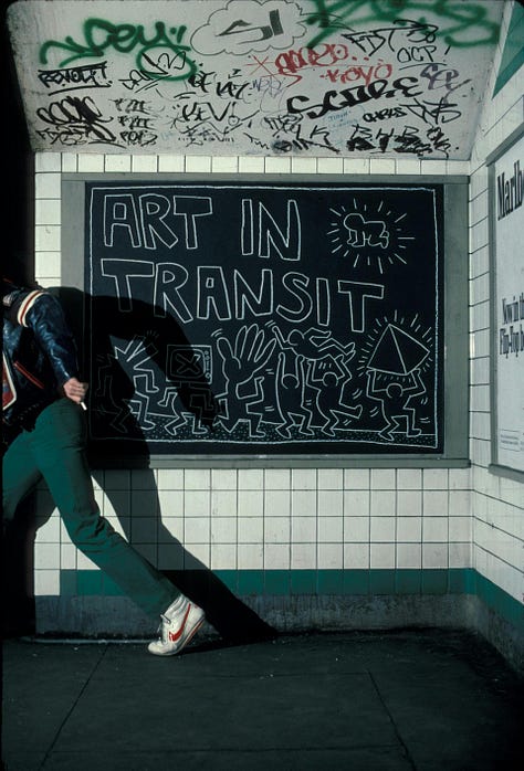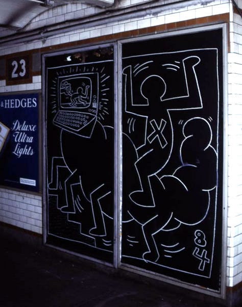 The 1980s marked a turning point for graffiti, as artists like Keith Haring and Jean-Michel Basquiat carried the visual language of the streets into galleries and museums, challenging the boundaries between “high” and “low” art. Both began with unsanctioned markings in New York City, but their rapid ascent reshaped how graffiti was perceived in the art world.