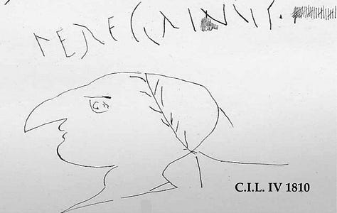 Election graffiti is especially common. Candidates for local office employed programmata, painted endorsements on walls, to spread their names across the city, often alongside praise for their character (e.g., “The neighbors of Marcus Holconius Priscus request you elect him duumvir,” CIL IV 7679). These public tags reveal a participatory political culture, not unlike modern campaign posters (Benefiel 97–99).