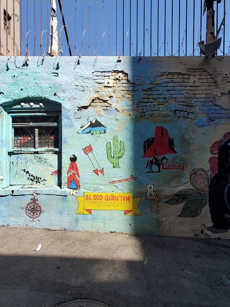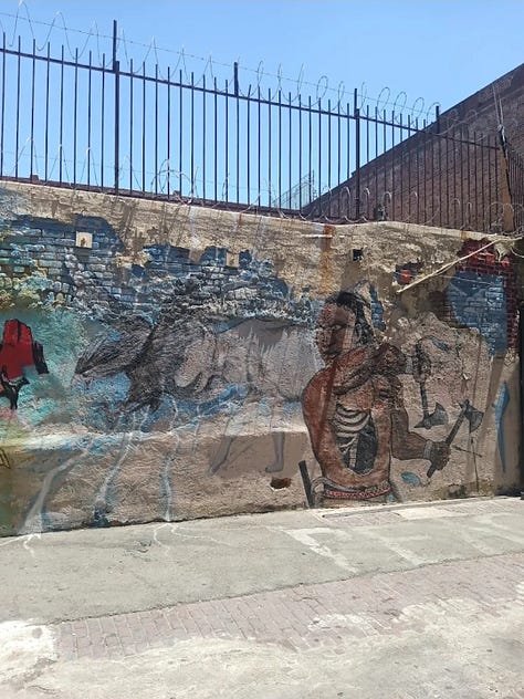 In North America, Native artists have turned urban walls into sites of reclamation. In Los Angeles, “Indian Alley”,a once-neglected stretch in Skid Row, has been transformed into a gallery of murals celebrating Native heritage. Artists such as Jaque Fragua (Jemez Pueblo) emphasize continuity between ancient rock art and graffiti, noting that “graffiti is a primordial art form” and that the “spirit of visual storytelling is still there” (Fragua quoted in Miranda 248). These works challenge stereotypes of Native invisibility in modern cities by asserting that Indigenous presence remains vibrant and enduring.