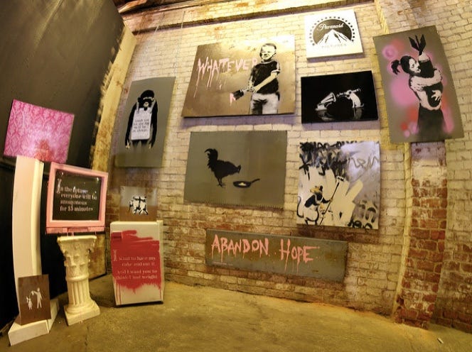 Banksy also challenged the boundaries of art institutions. His 2005 project Barely Legal in Los Angeles, featuring a painted elephant, mocked the spectacle of art consumption, while his 2009 Bristol Museum takeover inserted subversive works into a traditional museum setting (Ellsworth-Jones 142–46). Even his auction stunts, such as the self-shredding Girl with Balloon at Sotheby’s in 2018, turned the art market itself into a target of satire.