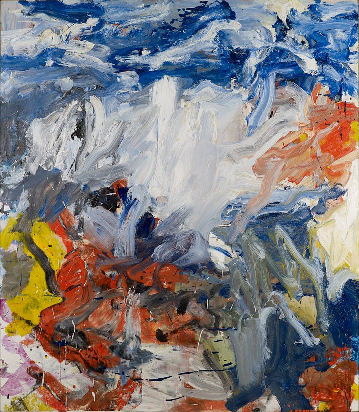 In the 1960s, de Kooning's style underwent another transformation. He began to focus more on landscape painting, creating abstracted, gestural landscapes that retained the dynamic brushwork of his earlier figure paintings. Works such as "Untitled" (1977) and "Whose Name Was Writ in Water" (1975) are characterized by their loose, almost improvisational compositions, which evoke the fluidity and movement of nature (Stevens & Swan, 2004).
