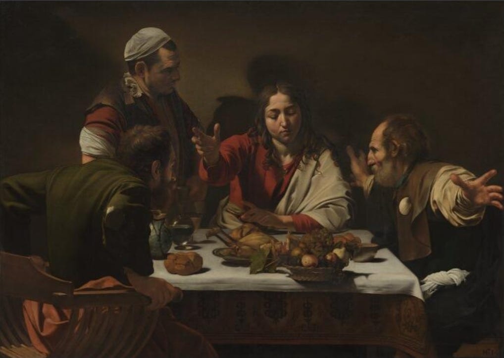National Gallery, London. Michelangelo Merisi da Caravaggio, The Supper at Emmaus, 1601. NG172. https://www.nationalgallery.org.uk/paintings/michelangelo-merisi-da-caravaggio-the-supper-at-emmaus
